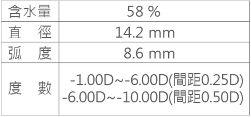 -1.00~-6.00(每0.25一級)